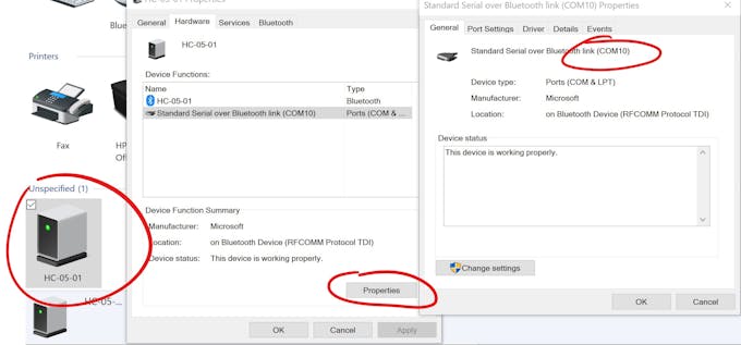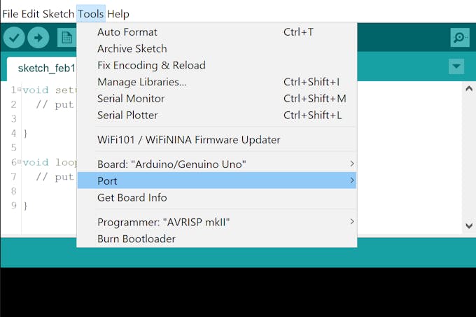 في Arduino IDE ، اختر المنفذ التسلسلي لوحدة Bluetooth (خاصتي COM10)