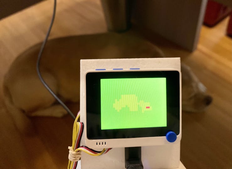يتم تحديث قراءات المستشعر إلى شاشة Wio Terminal LCD بفاصل 5 دقائق. تم تنزيل صور الرموز المجانية لثاني أكسيد الكربون ودرجة الحرارة والرطوبة من Flaticon وتم تحويلها إلى X BitMap (XBM) ، وهو تنسيق صورة ثنائية نص عادي ، باستخدام برنامج Convertio