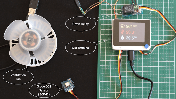 في هذا المشروع ، قمت ببناء جهاز بسيط ومحمول باستخدام Seeed Wio Terminal الذي يعرض مستوى ثاني أكسيد الكربون الداخلي ودرجة الحرارة والنسبة المئوية للرطوبة النسبية على شاشة LCD الخاصة به. عندما يتم تجاوز مستوى ثاني أكسيد الكربون بقيمة حدية محددة ، يبدأ الجرس المدمج في إصدار صفير ويتم تشغيل مروحة تهوية تعمل بجهد 5 فولت عبر USB للحفاظ على استمرار الدورة وتقليل مستويات ثاني أكسيد الكربون. هذا الجهاز مفيد خاصة أثناء النوم عندما يمكن أن يرتفع مستوى ثاني أكسيد الكربون بسبب ضعف دوران الهواء ويمكن أن يؤثر على الصحة.