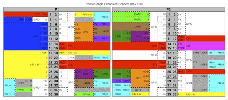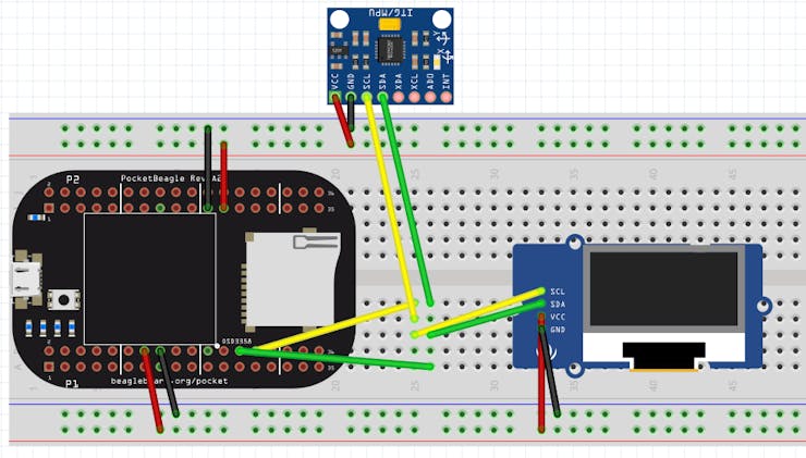 من وجهة نظر الأجهزة ، هذا المشروع بسيط جدًا ، كل ما تحتاجه هو PocketBeagle و MPU6050 IMU وشاشة OLED. نظرًا لأن PocketBeagle قد يكون نظامًا أساسيًا غير مألوف للبعض منكم ، فأنا أرفق الرسم التخطيطي الخاص به هنا. يتوافق الجزء العلوي من الرسم البياني مع منفذ micro-USB.