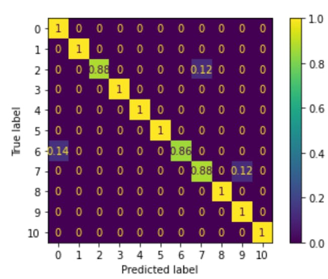 على الرغم من أن بيانات الإيماءات الأولية بدت صاخبة ومعقدة تمامًا ، إلا أنه بعد معالجة البيانات وتدريب الشبكة العصبية ، لا يزال النموذج يحقق دقة تزيد عن 90٪ في بيانات الاختبار.